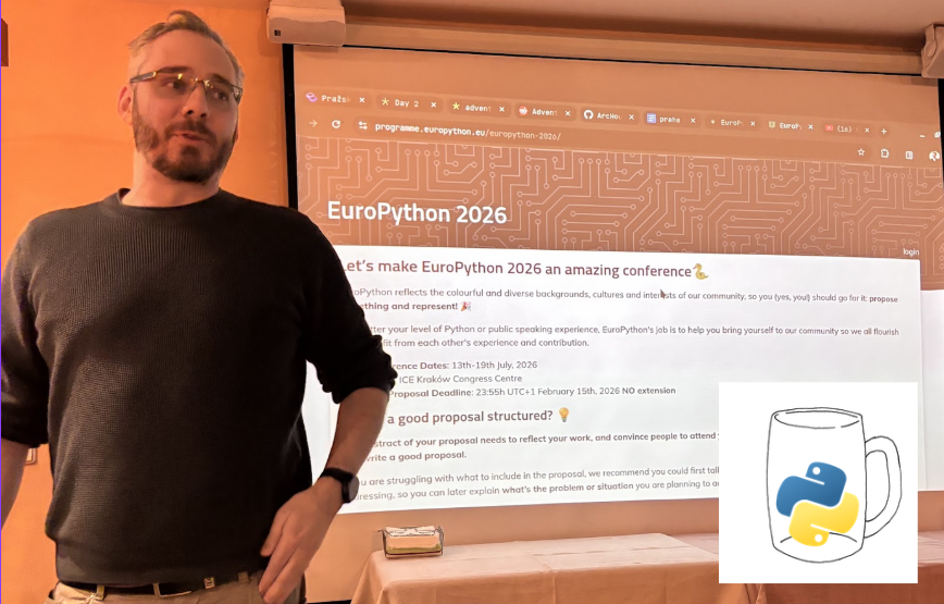 Big thanks to our speaker and community organiser Honza Král for giving a lightning talk about EuroPython at Prague Pyvo. If you're a speaker or community organizer, we'd love your help spreading the word about the CfP!